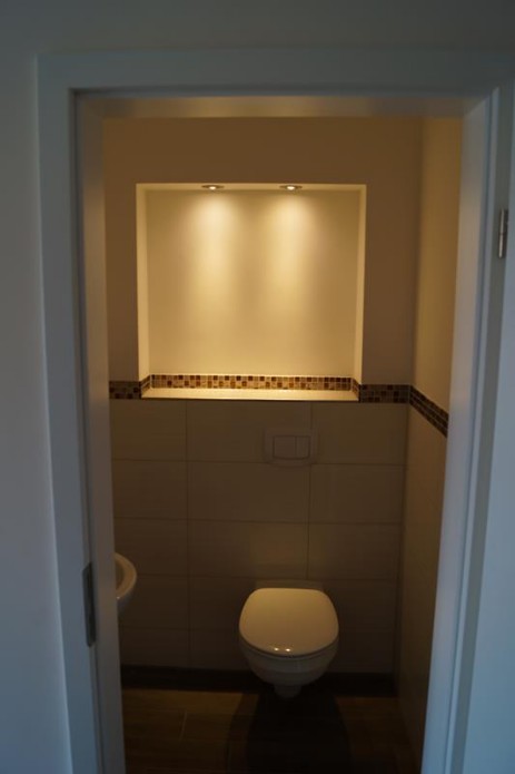 1 Wand WC weiß mit Deckel. Rollenhalter chrom.